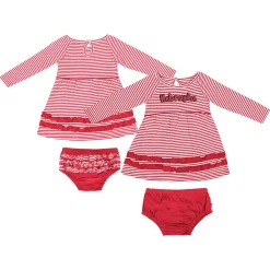 Newborn & Infant Colosseum Gray/Scarlet Nebraska Huskers Hand In Hand Ombre Dress & Bloomers Set
