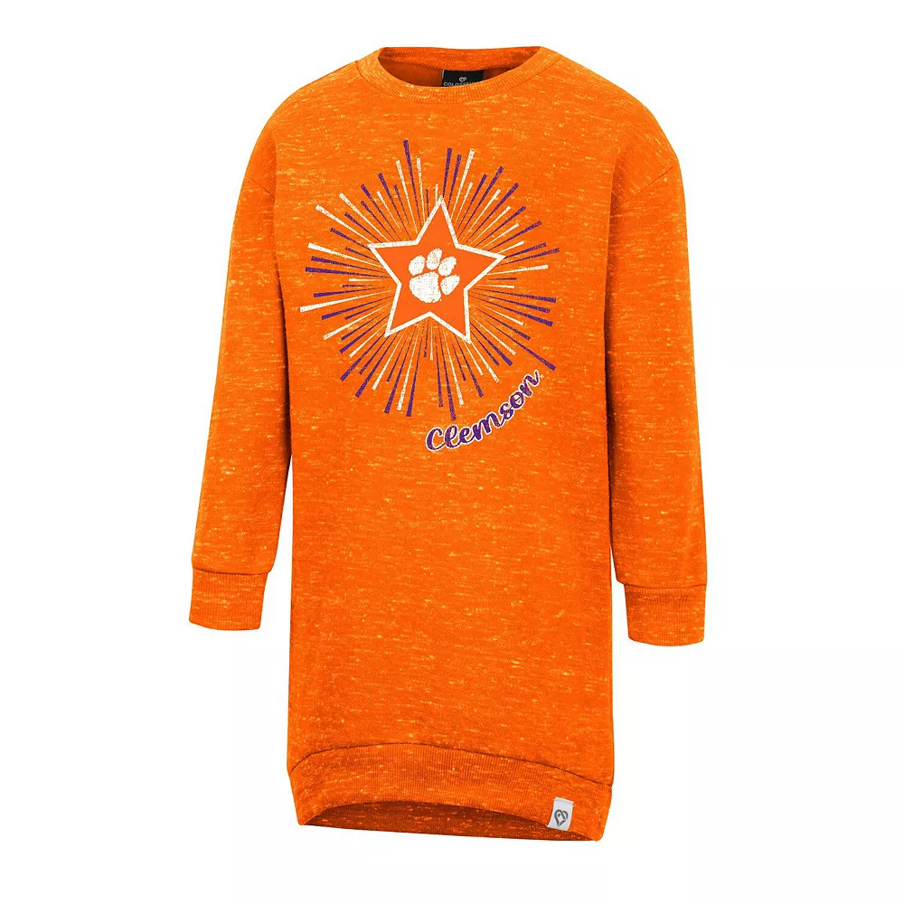 For a charming display of Clemson Tigers spirit, grab your little one this Cindy Lou sweatshirt dress from Colosseum. Distressed Clemson Tigers graphics and signature team colors make for an adorable look. Plus, the cozy midweight design provides long-lasting warmth.