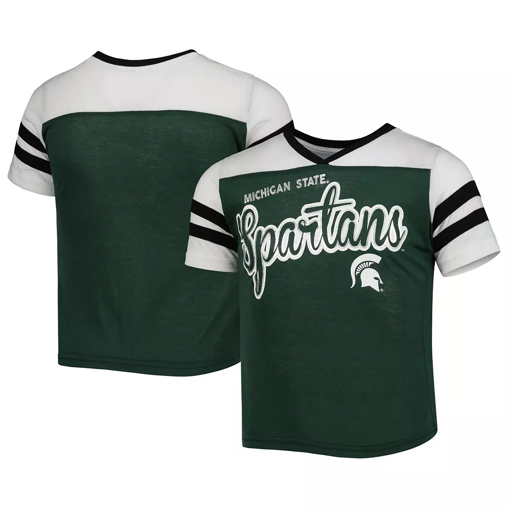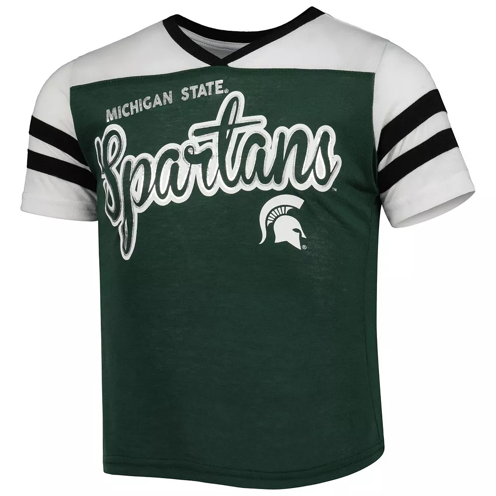 This Colosseum Practically Perfect V-neck T-shirt is a charming addition to your young fan’s team gear. It features eye-catching Michigan State Spartans graphics and stripes that are sure to stand out. Plus, the soft fabric promotes a comfortable feel for all-day wear.