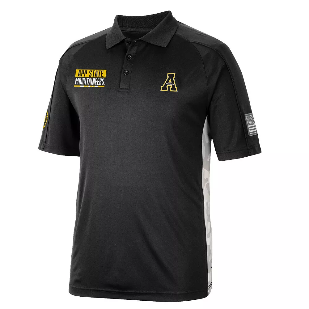 Support the Appalachian State Mountaineers and a patriotic cause with this OHT Military Appreciation Snow Camo polo from Colosseum. It features striking team graphics on the front and an American flag applique on the left sleeve. The subtle snow camo pattern on the side gives this Appalachian State Mountaineers polo a unique finish.