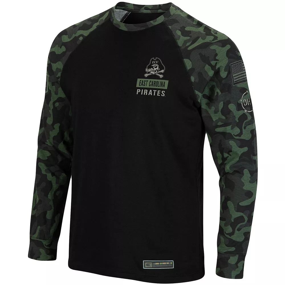Embrace your one and only fandom by rocking this bold ECU Pirates OHT Military Appreciation Camo raglan T-shirt from Colosseum! It features eye-catching graphics that coordinate with the camo pattern on the sleeves. You’ll proudly represent your beloved ECU Pirates when you put on this military-inspired top.