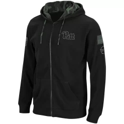 Elevate your Pitt Panthers gear by grabbing this OHT Military Appreciation full-zip hoodie from Colosseum. It features embroidered Pitt Panthers graphics that coordinate with the camo pattern on the drawstrings and hood lining. You’ll proudly represent your favorite collegiate squad when you put on this military-inspired outerwear.