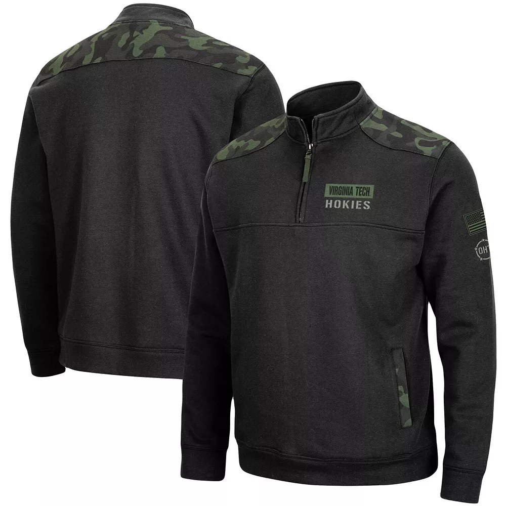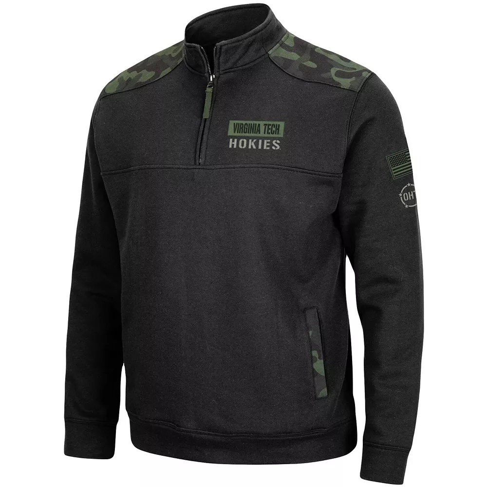 You love to show your Virginia Tech Hokies fandom and unmoving appreciation for military veterans. When the temperatures drop, reach for this OHT Military Appreciation Commo fleece quarter-zip from Colosseum. With its prominent camo pattern and crisp Virginia Tech Hokies graphics, you’ll be ready when the action on the field picks up and you’ll be supporting military veterans at the same time.