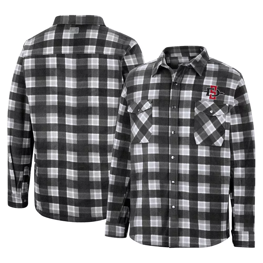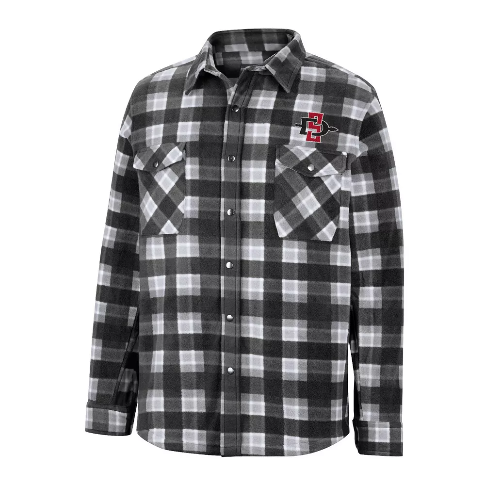 Instantly upgrade any outfit with this San Diego State Aztecs full-snap shirt jacket from WEAR by Erin Andrews. It features a stylish plaid pattern that coordinates with the understated San Diego State Aztecs details. Plush fleece lining also adds an extra layer of softness and warmth.