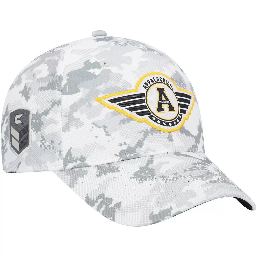 Proudly support your Appalachian State Mountaineers and service members with this OHT Military Appreciation hat from Colosseum. It features a military-inspired Appalachian State Mountaineers logo, allover camo pattern and embroidered American flag. A snapback closure also lets you choose which fit is most comfortable.