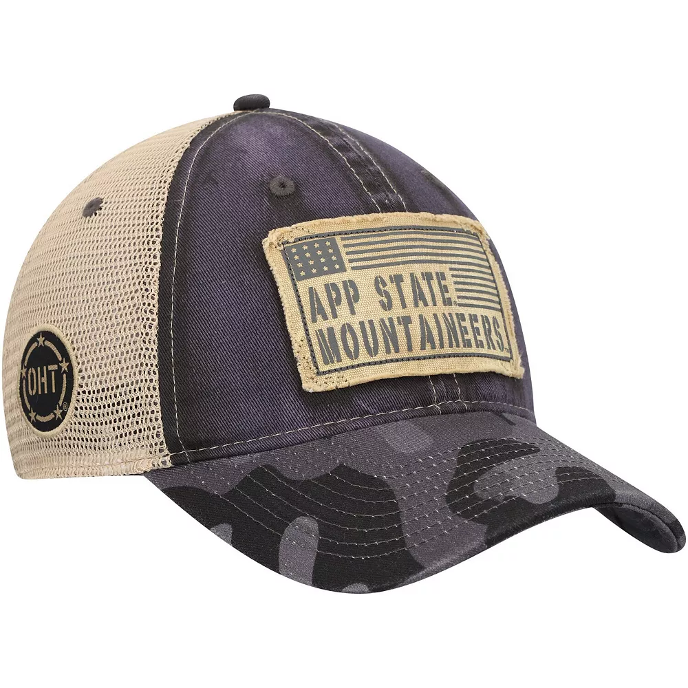 Help your love for the Appalachian State Mountaineers as well as your support for our valiant service members unite by grabbing this spirited OHT United trucker hat from Colosseum. While the snapback closure ensures a comfortable fit, the mid and rear mesh panels provide more airflow, keeping you fresh and cool throughout the day. Best of all, the timeless Appalachian State Mountaineers and OHT graphics as well as its camo design show off your appreciation loud and proud.