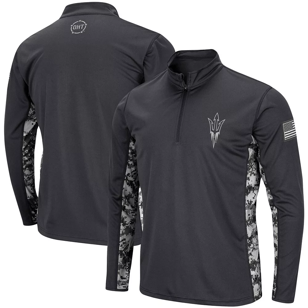 Express your undeniable dedication to the Arizona State Sun Devils by grabbing this OHT Military Appreciation Digi Camo Quarter-Zip jacket from Colosseum. It features embroidered Arizona State Sun Devils graphics that coordinate with the camo design down the sides. You’ll proudly represent your favorite collegiate squad when you put on this military-inspired piece of outerwear.