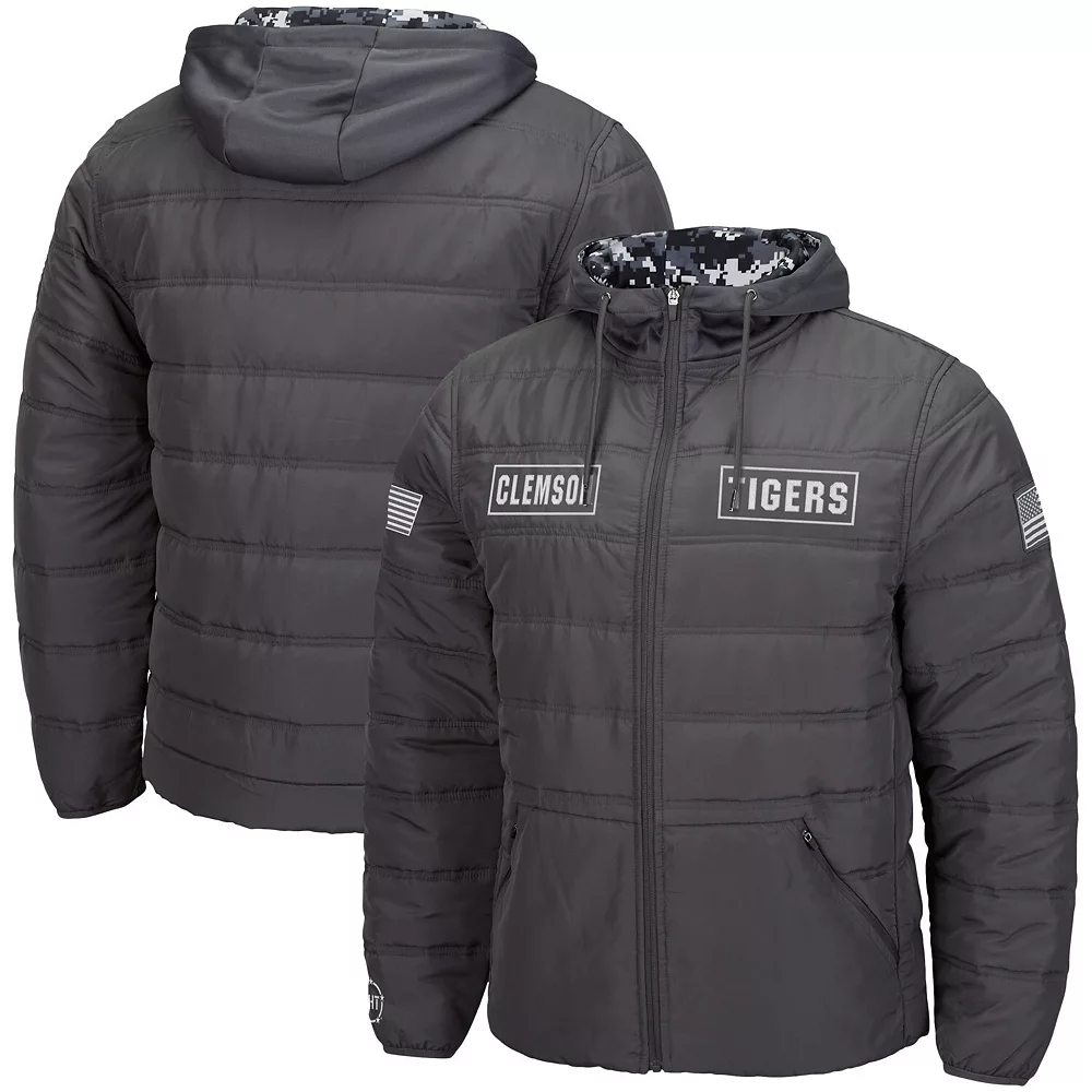 Ensure your enthusiasm for the next Clemson Tigers win is clear to all in this OHT Military Appreciation Digital Camo Puffer jacket from Colosseum. It features camo detailing and a full-zip closure to give you a look you will be proud to show off this season. Complete with Clemson Tigers graphics on the chest, this jacket will be just the extra layer you reach for on a cool day.