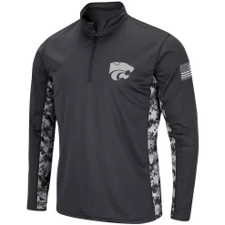 Express your undeniable dedication to the Kansas State Wildcats by grabbing this OHT Military Appreciation Digi Camo Quarter-Zip jacket from Colosseum. It features embroidered Kansas State Wildcats graphics that coordinate with the camo design down the sides. You’ll proudly represent your favorite collegiate squad when you put on this military-inspired piece of outerwear.