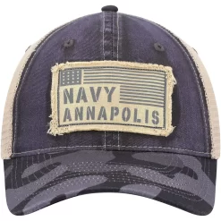 Help your love for the Navy Midshipmen as well as your support for our valiant service members unite by grabbing this spirited OHT United trucker hat from Colosseum. While the snapback closure ensures a comfortable fit, the mid and rear mesh panels provide more airflow, keeping you fresh and cool throughout the day. Best of all, the timeless Navy Midshipmen and OHT graphics as well as its camo design show off your appreciation loud and proud.