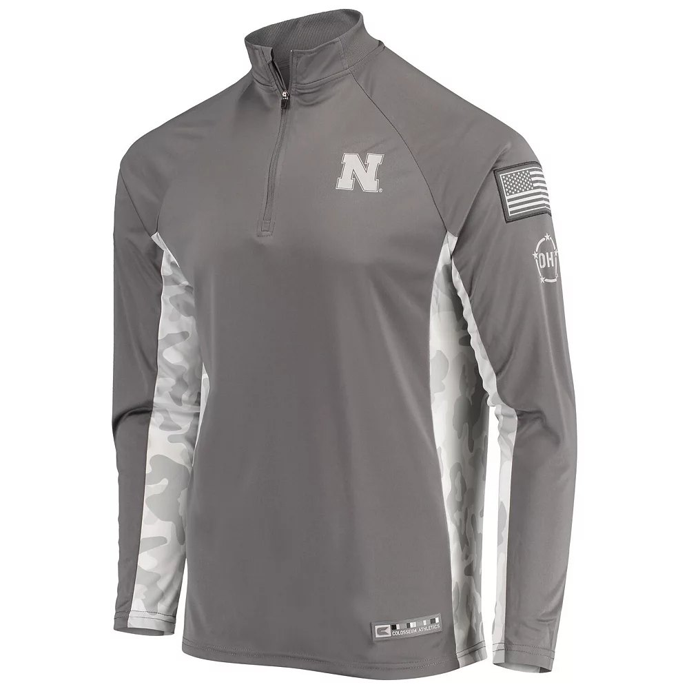 Layer up and show your team spirit in this OHT Military Appreciation Swoop quarter-zip jacket from Colosseum. It features sleek Nebraska Huskers graphics and an American flag to honor those that serve. Perfect for everyday wear, this Nebraska Huskers jacket is a great way to share your fandom with the world.