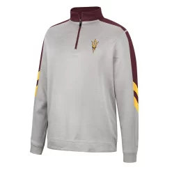 Focus attention on your Arizona State Sun Devils fandom by wearing this Bushwood Fleece jacket from Colosseum. It features understated Arizona State Sun Devils graphics highlighted by the contrasting sleeves in team colors. Additionally, the quarter-zip closure provides built-in venting to help you stay comfortable as weather conditions change.