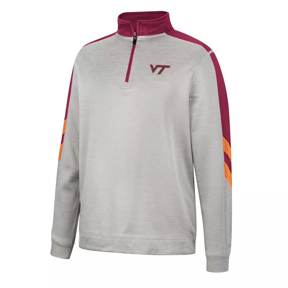 Focus attention on your Virginia Tech Hokies fandom by wearing this Bushwood Fleece jacket from Colosseum. It features understated Virginia Tech Hokies graphics highlighted by the contrasting sleeves in team colors. Additionally, the quarter-zip closure provides built-in venting to help you stay comfortable as weather conditions change.