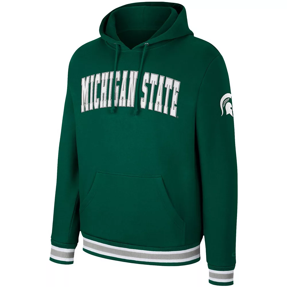 When gearing up for Michigan State Spartans game day, be sure to make this Colosseum Varsity Arch pullover hoodie part of your outfit. It features classic team graphics on both the front and sleeve, making it easy to highlight your unwavering fandom. The contrast-color stripes on the cuffs and hem add an extra layer of style that you’ll want to sport every time you cheer on the Michigan State Spartans.