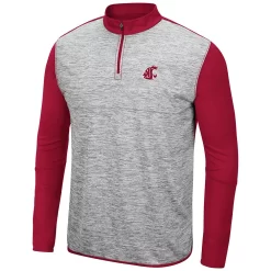 Create an ensemble well suited to your Washington State Cougars pride with this Prospect jacket. Colosseum has crafted a lightweight jacket that’s great as a layering piece or for keeping warm on slightly chilly days. Its subtle Washington State Cougars graphics are enhanced by the contrasting sleeves, back and collar, allowing this quarter-zip to be paired with other team apparel easily.
