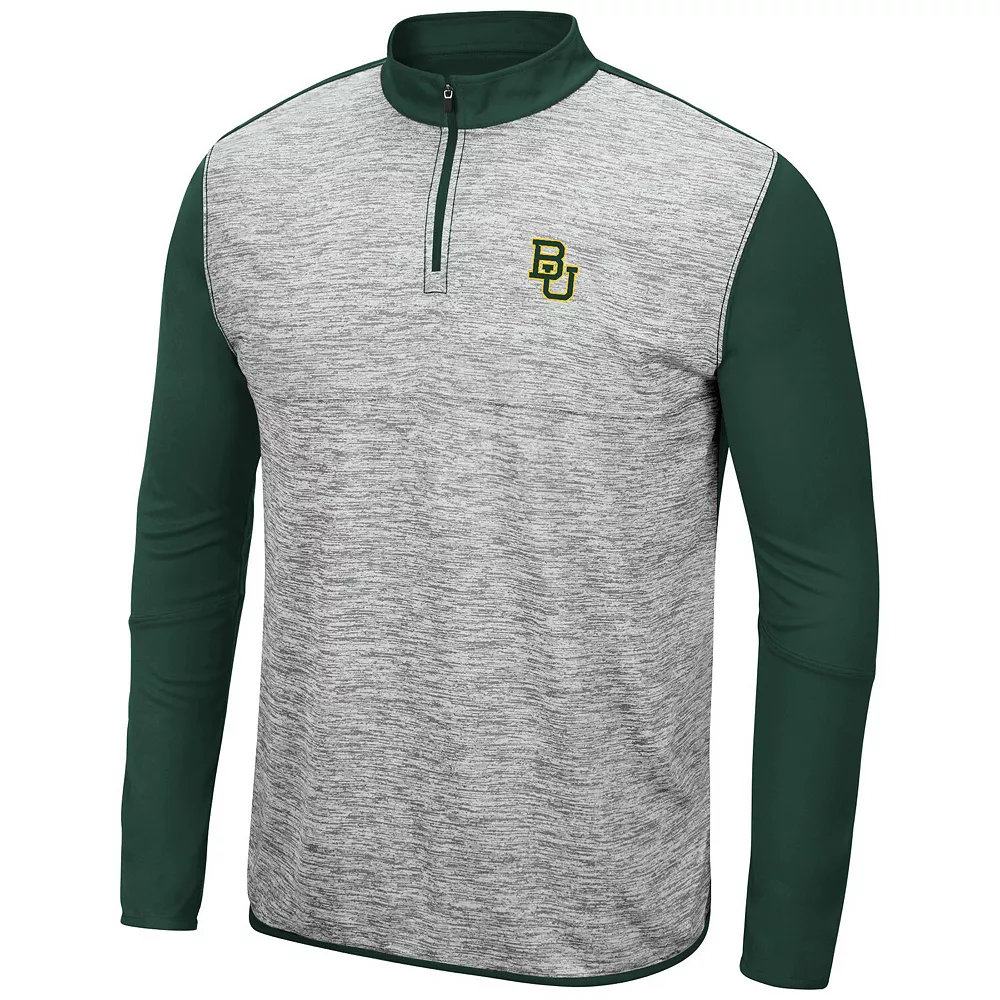 Create an ensemble well suited to your Baylor Bears pride with this Prospect jacket. Colosseum has crafted a lightweight jacket that’s great as a layering piece or for keeping warm on slightly chilly days. Its subtle Baylor Bears graphics are enhanced by the contrasting sleeves, back and collar, allowing this quarter-zip to be paired with other team apparel easily.