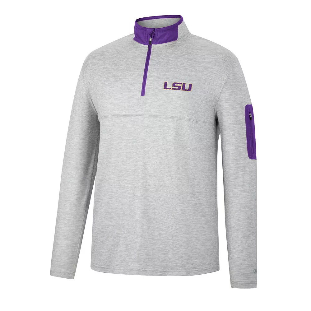 Grab this Colosseum Country Club quarter-zip jacket to show off your fiery LSU Tigers spirit in style. It offers lightweight construction to promote breathability as well as a zippered sleeve pocket to securely hold essentials. On top of that, the LSU Tigers graphics let everyone know who you root for come game day.
