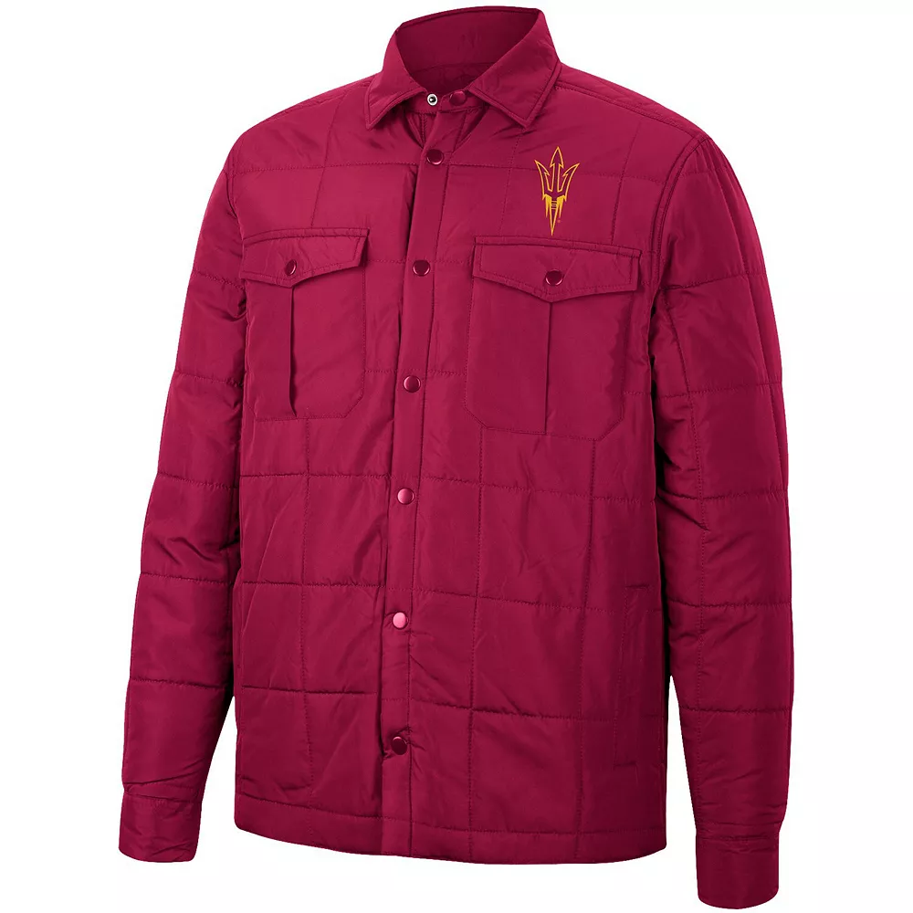 Add an explosive piece of Arizona State Sun Devils gear to your cool weather collection by grabbing this Colosseum Detonate full-snap jacket. It features striking team graphics and an authentic colorway to elevate your fandom in true Arizona State Sun Devils style. Plus, the cozy design helps to keep you warm while the abundance of pockets allows you to securely hold your essentials.