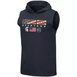 Give a salute to veterans while cheering on the Michigan State Spartans with this OHT Military Appreciation T-shirt. This sleeveless tee features a unique hoodie design and American flag-inspired team graphics across the chest. Add a patriotic touch to any Michigan State Spartans look with this striking shirt.