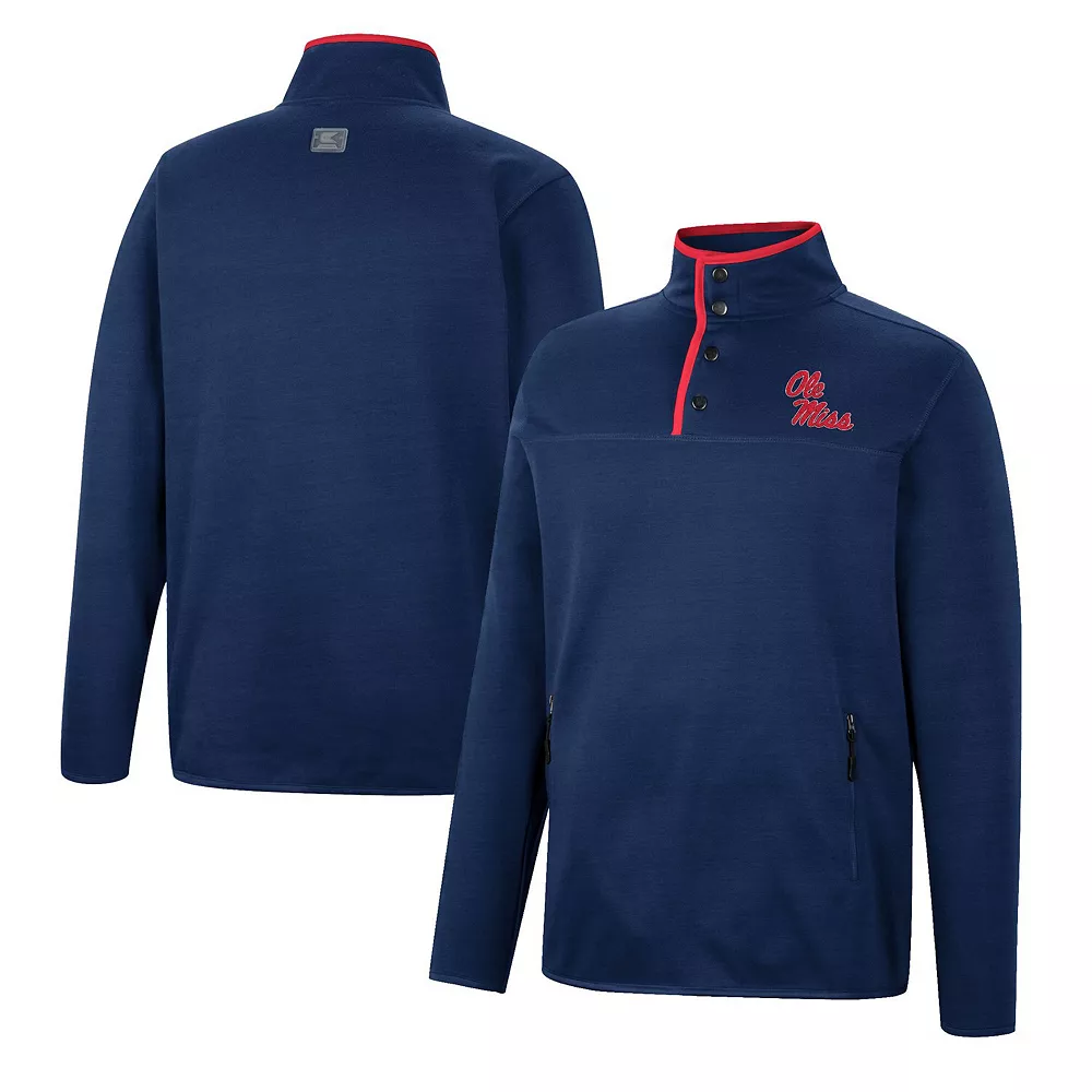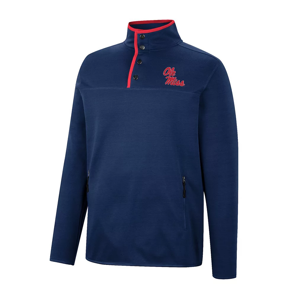 Show that colder temperatures are no match for your fiery passion for the Ole Miss Rebels when you layer up in this Rebound Snap jacket from Colosseum. This bold pullover features a distinct look thanks to its four-snap placket, as well as convenient storage due to its two front pockets. Plus, the fresh Ole Miss Rebels embroidery and vibrant colorway add flair to your chilly weather collection.