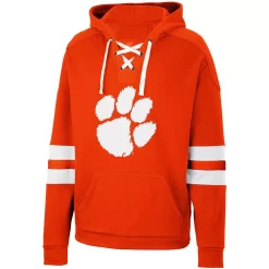 Show your unwavering Clemson Tigers spirit with this Lace-Up 4.0 pullover hoodie from Colosseum. Not only is it the neckline that makes this top unique, but the sewn-on stripes on both sleeves add an extra layer of team color and excitement. The team’s logo across the front is sure to make this midweight piece your next go-to option for Clemson Tigers game day.