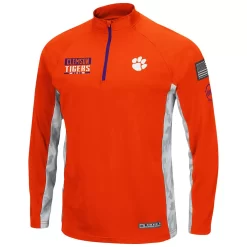 As a loyal member of the Clemson Tigers faithful, your game day gear should be top-notch. Make a quality new addition to your selection with this OHT Military Appreciation Snow Cruise Raglan 1/4-zip jacket from Colosseum. Along with the Clemson Tigers logo on the chest, this jacket comes complete with camo paneling along the arms for a unique extra layer you will be proud to show off.