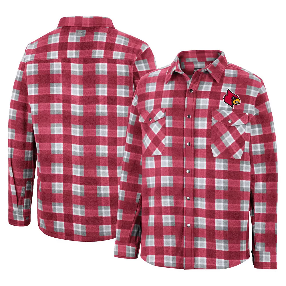 Instantly upgrade any outfit with this Louisville Cardinals full-snap shirt jacket from WEAR by Erin Andrews. It features a stylish plaid pattern that coordinates with the understated Louisville Cardinals details. Plush fleece lining also adds an extra layer of softness and warmth.