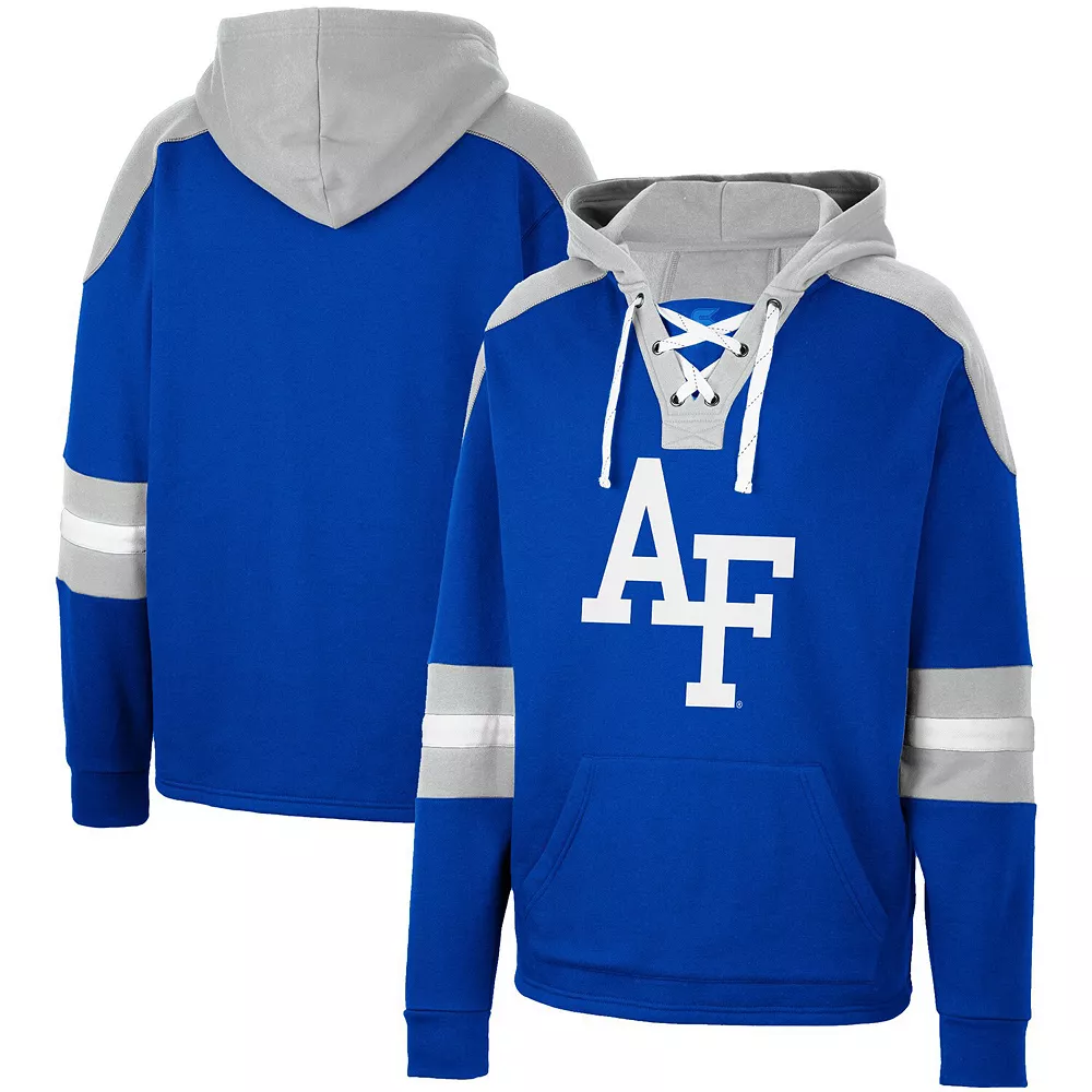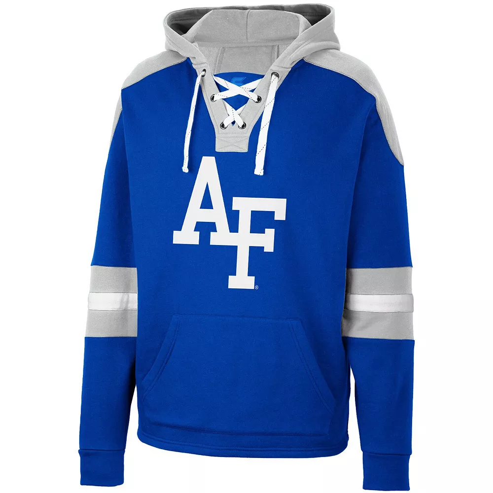 Show your unwavering Air Force Falcons spirit with this Lace-Up 4.0 pullover hoodie from Colosseum. Not only is it the neckline that makes this top unique, but the sewn-on stripes on both sleeves add an extra layer of team color and excitement. The team’s logo across the front is sure to make this midweight piece your next go-to option for Air Force Falcons game day.