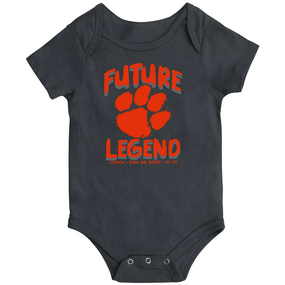 Declare your little fan a future Clemson Tigers legend with this Core bodysuit from Colosseum. This one-piece outfit has a lap shoulder neckline and three snaps at the bottom to make dressing a breeze. Plus, team graphics across the front show off your little one’s budding Clemson Tigers enthusiasm.