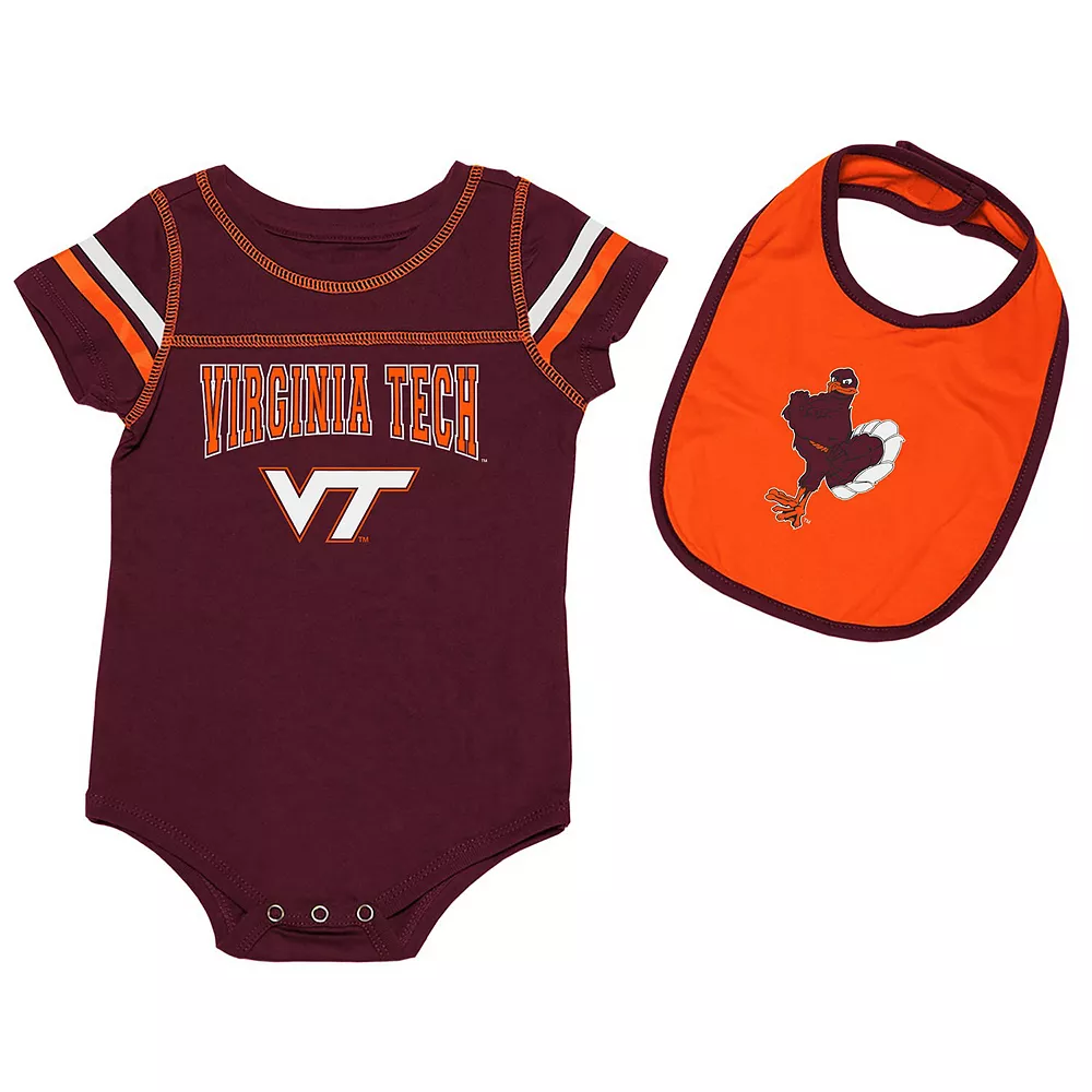 You’ve just welcomed a new bundle of joy to your household, so naturally, it’s time to immediately introduce them to Virginia Tech Hokies fandom. This Colosseum Chocolate bodysuit and bib set features game-ready Virginia Tech Hokies colors and graphics that will put a smile on their face. It won’t be long before they’re as big a fan as you when they have this set to spark their enthusiasm.