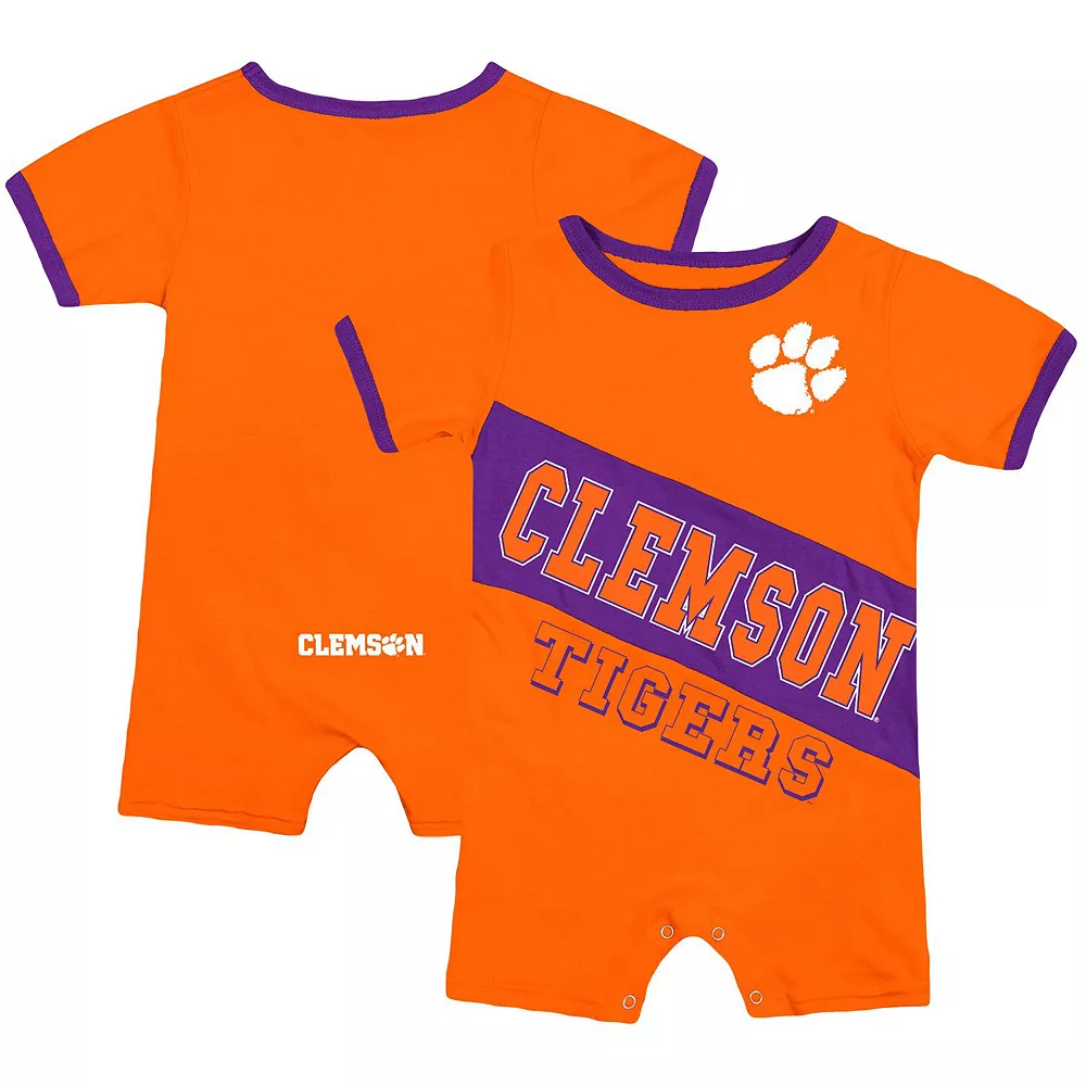 Outfit your newest little addition to the Clemson Tigers fan club in this Colosseum Teddy romper. The snap closure helps to make dressing quick and easy, and the lightweight fabric offers a comfortable feel. Vibrant Clemson Tigers graphics showcase their budding fandom in a charming fashion.