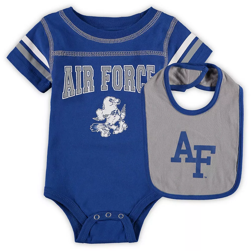 Outfit your little one in this Air Force Falcons Chocolate set by Colosseum to establish their budding fandom. It includes a bodysuit and bib, both with distinct Air Force Falcons graphics. Plus, the hook and look closure on the bib and the three-snap bottom closure make for easy dressing and comfort.
