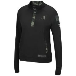 Support more than just the Alabama Crimson Tide when you wear this OHT Military Appreciation Depth quarter-snap jacket from Colosseum. It features printed Alabama Crimson Tide graphics on the front, an American flag applique on the left sleeve and camo trim. Raglan sleeves also provide some extra room for more flexible movement.