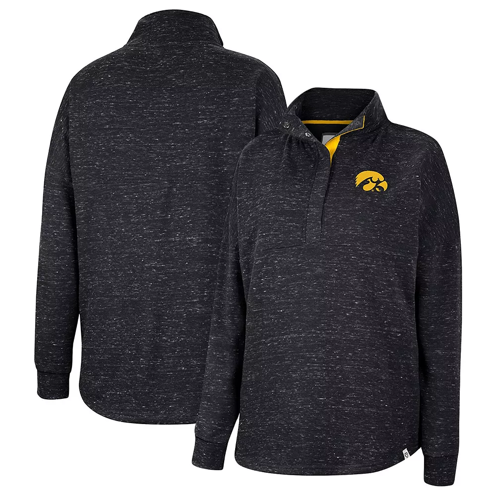 For coverage, style and ease of wear, grab this Colosseum Natalie quarter-snap top. Subtle Iowa Hawkeyes graphics are complemented by an allover speckled pattern. Plus, dropped shoulders increase your arm room for extra comfort.