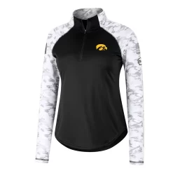 Offer your full support to our military members while also emphasizing your Iowa Hawkeyes fandom with this OHT Flash quarter-zip jacket from Colosseum. The main body is comprised of authentic team colors while the sleeves feature a vibrant arctic camo design, which is separated by contrast-color stitching. The raglan sleeves and mock neck work together to make this patriotic top the most comfortable option for representing the Iowa Hawkeyes.