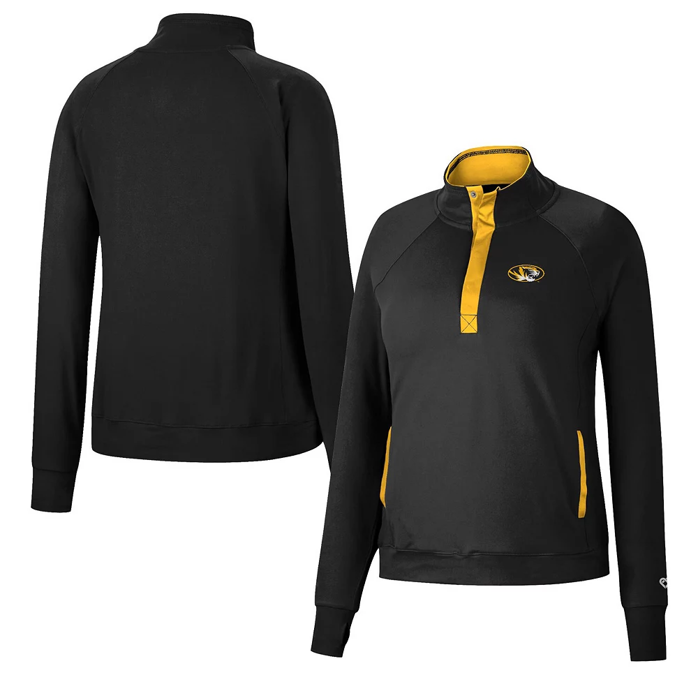 This Colosseum Kipling quarter-snap top is as stylish as it is comfy. It features a distinct Missouri Tigers design with signature colors and graphics for a fan-forward look. Plus, raglan sleeves allow for easy movements, while the mock neck supplies extra coverage in case temperatures drop.
