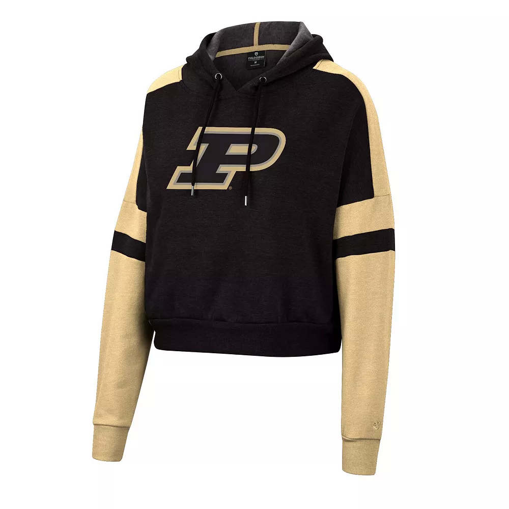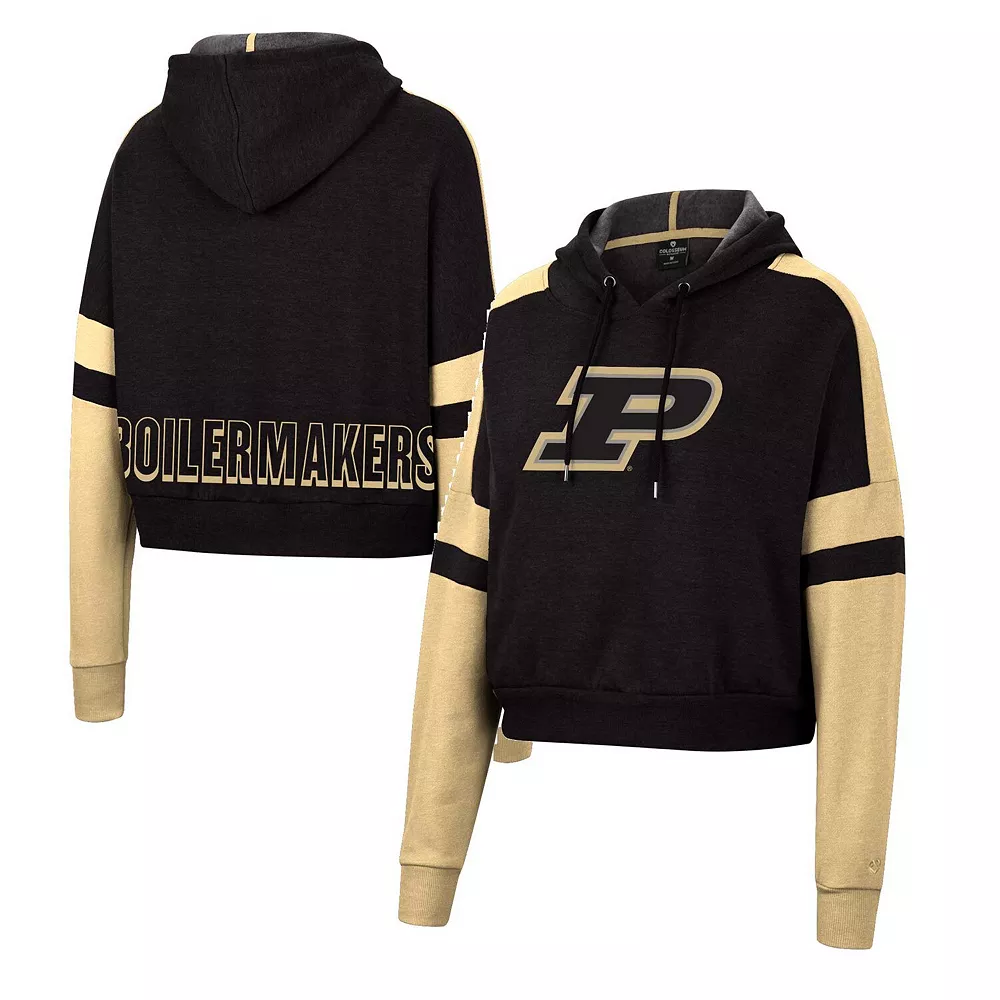 Gear up for Purdue Boilermakers game day in this Throwback pullover hoodie from Colosseum. Its cropped hem adds a stylish touch while the team’s iconic logo lets everyone know about your die-hard fandom. Contrasting stripes in team colors going down the sleeves provide the perfect finishing touch to this Purdue Boilermakers top.