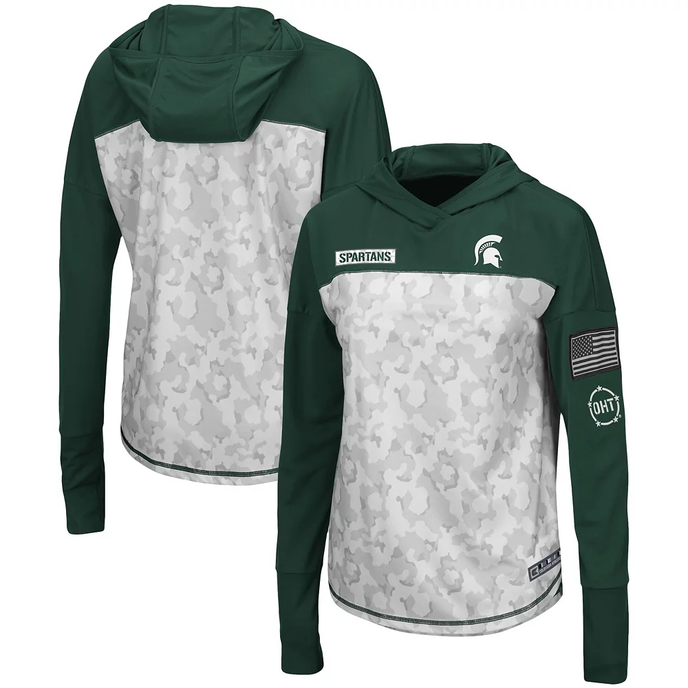 Grab this comfortable OHT Military Appreciation Mission Arctic Camo Hoodie T-shirt every time you want to show off your Michigan State Spartans spirit. It features eye-catching team graphics to help you connect with fellow fans. Perfect for Michigan State Spartans game days, this stylish tee is a great way to flaunt your fandom.