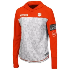 Grab this comfortable OHT Military Appreciation Mission Arctic Camo Hoodie T-shirt every time you want to show off your Clemson Tigers spirit. It features eye-catching team graphics to help you connect with fellow fans. Perfect for Clemson Tigers game days, this stylish tee is a great way to flaunt your fandom.