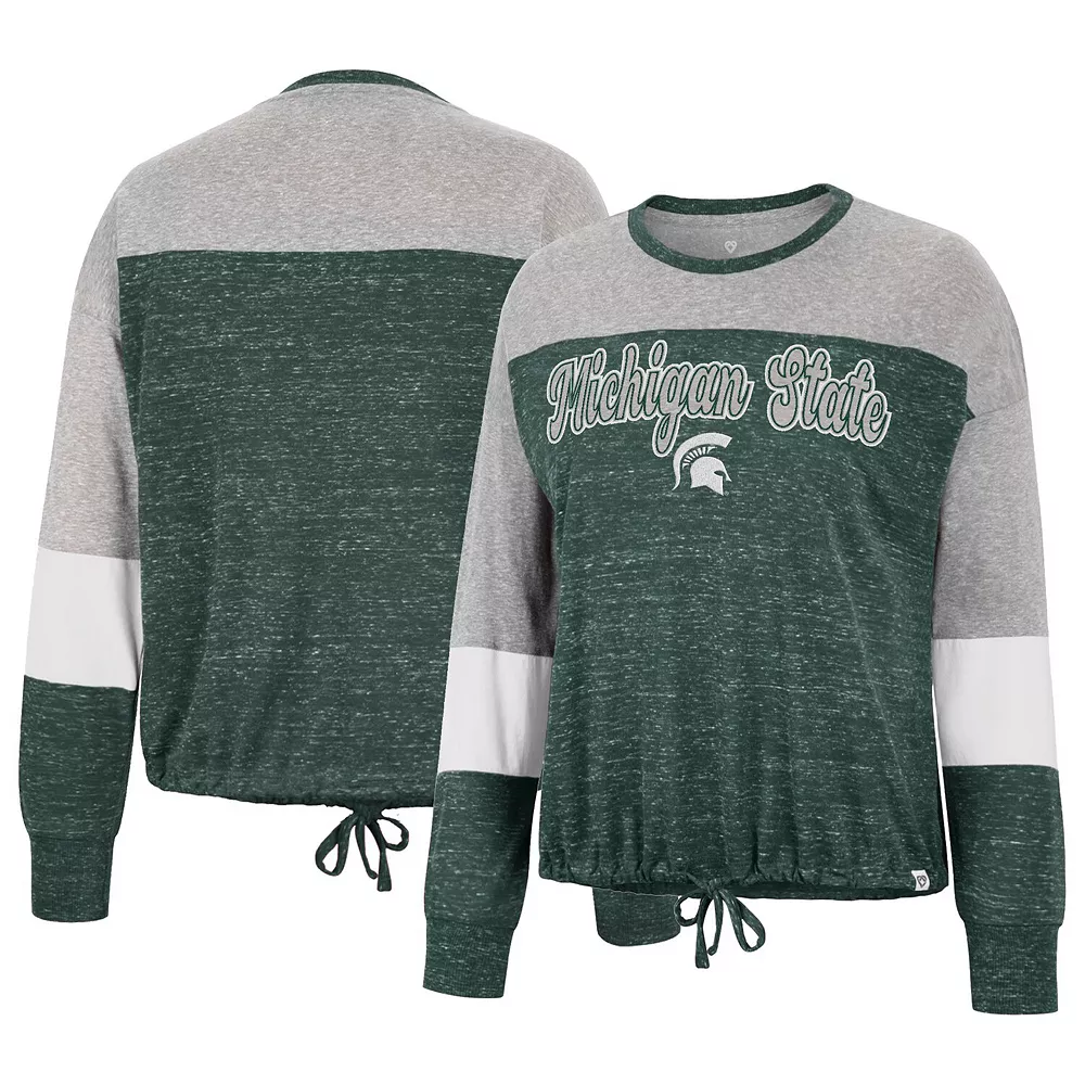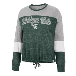 Add a fun finish to any fan look with this Michigan State Spartans Joanna T-shirt. This top from Colosseum features sleek team graphics and a stylish tie front. Whether tailgating or enjoying a day out, show school spirit with this eye-catching Michigan State Spartans tee.