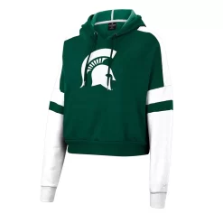 Gear up for Michigan State Spartans game day in this Throwback pullover hoodie from Colosseum. Its cropped hem adds a stylish touch while the team’s iconic logo lets everyone know about your die-hard fandom. Contrasting stripes in team colors going down the sleeves provide the perfect finishing touch to this Michigan State Spartans top.