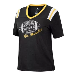 Showcase your love for Iowa Hawkeyes football with this 15 Min Early V-neck T-shirt from Colosseum. It features a bold team wordmark, logo and football graphic printed just below the flattering V-neckline. Plus, side split hems allow the shirt to move with you and offer a comfy fit and feel fit for any laid-back game day.