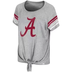 Look fashionable on Alabama Crimson Tide game day in this Boo You Knotted T-shirt from Colosseum. It features printed Alabama Crimson Tide graphics accentuated by the stripes in coordinating team colors and a chic tie detail in the front. Plus, raglan sleeves provide a little extra room for more comfortable movement.