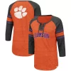 Look fashionable on Clemson Tigers game day in this Boo You Knotted T-shirt from Colosseum. It features printed Clemson Tigers graphics accentuated by the stripes in coordinating team colors and a chic tie detail in the front. Plus, raglan sleeves provide a little extra room for more comfortable movement.