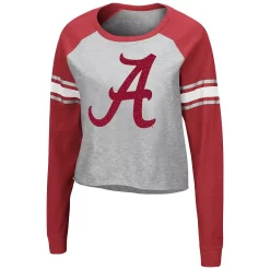 Let your Alabama Crimson Tide spirit shine in this Decoder Pin T-shirt. This chic top features a large Alabama Crimson Tide graphic on the chest with rhinestone embellishments that make your loyalty stand out for all the right reasons. In addition, the raglan sleeves offer ease of movement, so cheering on your team is all the more comfortable.