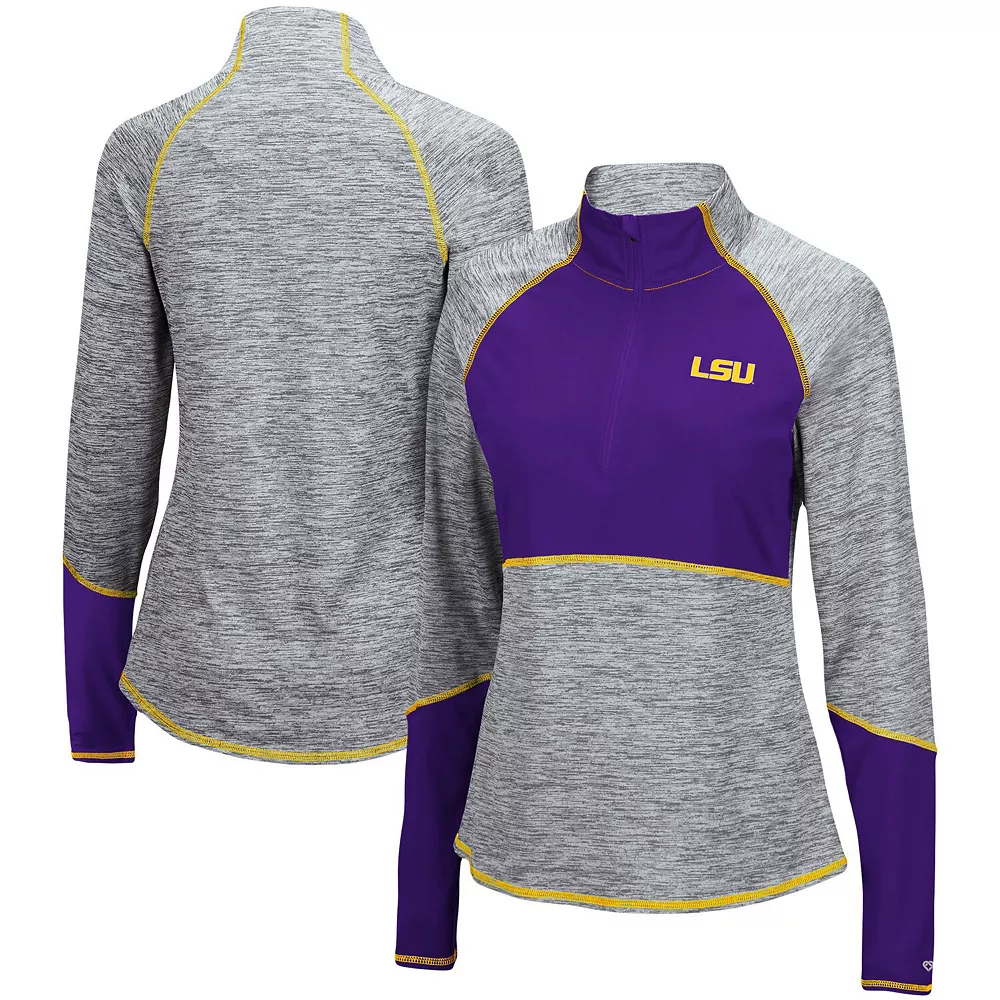Focus attention on your LSU Tigers fandom by wearing this quarter-zip top from Colosseum. Its color-block design with matching stitching highlights the LSU Tigers logo and is accentuated by the contrasting space-dye pattern. In addition, raglan sleeves create a little extra room for more flexible movement.