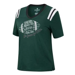 Showcase your love for Michigan State Spartans football with this 15 Min Early V-neck T-shirt from Colosseum. It features a bold team wordmark, logo and football graphic printed just below the flattering V-neckline. Plus, side split hems allow the shirt to move with you and offer a comfy fit and feel fit for any laid-back game day.