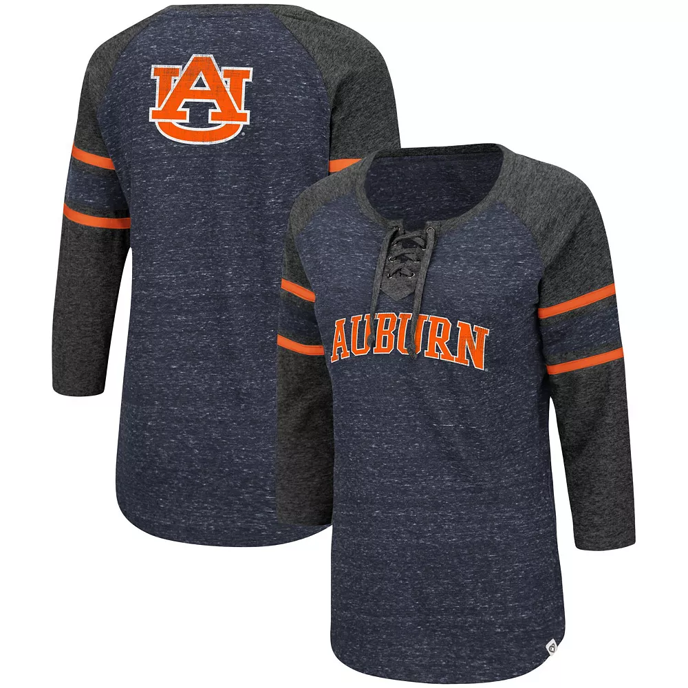 Showcase your devotion to the Auburn Tigers with a trendy look by reaching for this Scienta Pasadena 3/4 Sleeve Space Dye T-shirt. It features bold Auburn Tigers graphics, a lace-up neckline and raglan sleeves for a comforting fit with each wear. Sport this two-toned tee and enjoy a cool, casual display of your unwavering commitment to your squad!