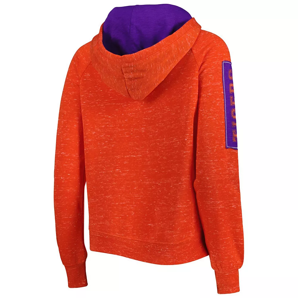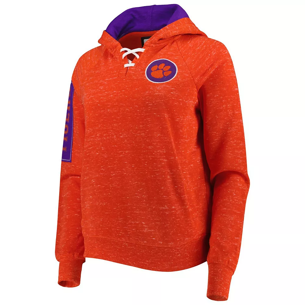 Add an exciting piece of Clemson Tigers gear to your rotation with this The Devil Speckle Lace-Placket raglan pullover hoodie from Colosseum. The stitched and embroidered team appliques go perfectly with the distressed graphics to give this top a unique look. It also features slub fabric and a faux lace-up to give you the most stylish piece of Clemson Tigers game day apparel.