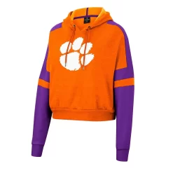 Gear up for Clemson Tigers game day in this Throwback pullover hoodie from Colosseum. Its cropped hem adds a stylish touch while the team’s iconic logo lets everyone know about your die-hard fandom. Contrasting stripes in team colors going down the sleeves provide the perfect finishing touch to this Clemson Tigers top.